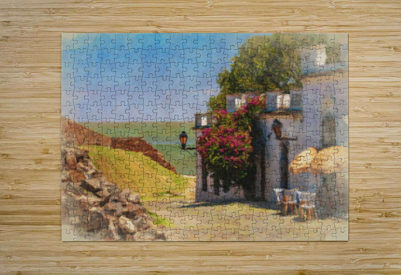 Oil painting of cobbled street in Colonia del Sacramento Steve Heap Puzzle printing
