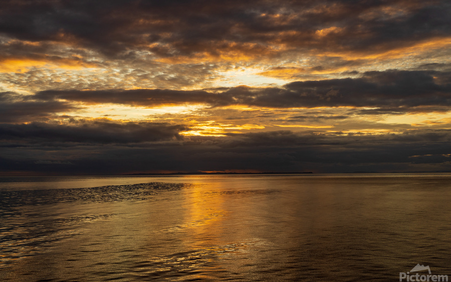 ABOUT THIS ARTWORK: GOLDEN SUNSET ON A CRUISE ON A CALM PACIFIC OCEAN