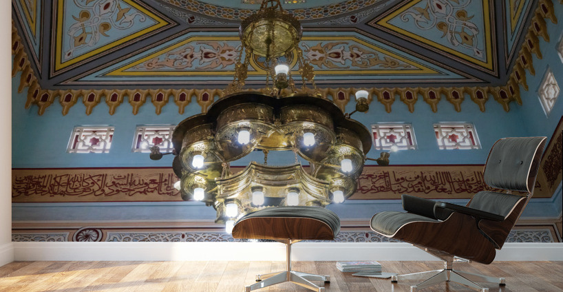 View into the painted dome inside the Jumeirah Mosque in Dubai open to all visitors