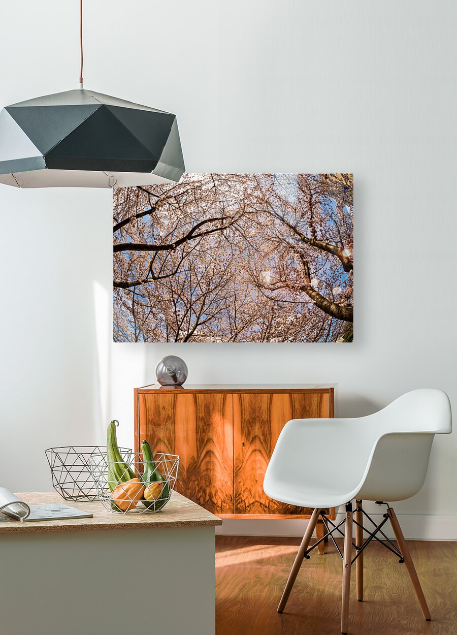 ABOUT THIS ARTWORK: LOOKING UP AT CHERRY BLOSSOMS OVER WALKING TRAIL IN MORGANTOWN
