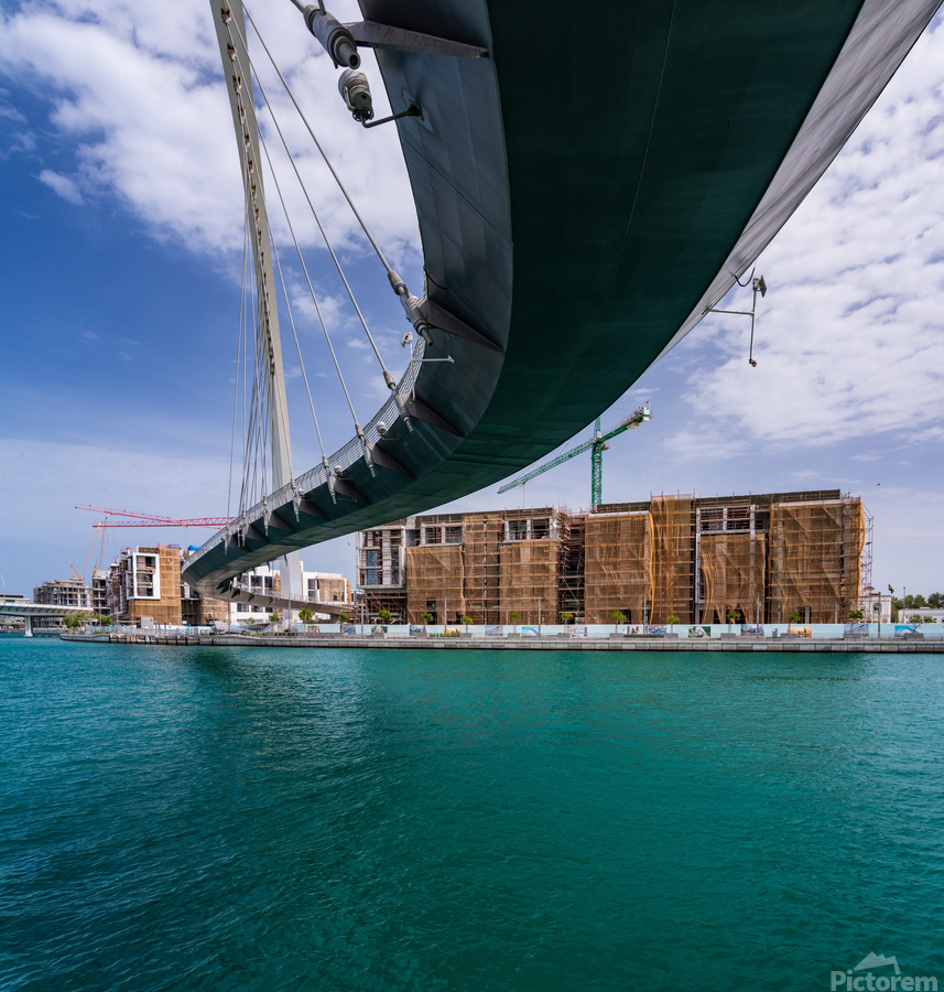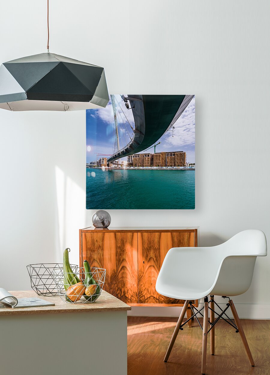 ABOUT THIS ARTWORK: MODERN APARTMENTS ALONGSIDE DUBAI CANAL UNDER TOLERANCE BRIDGE