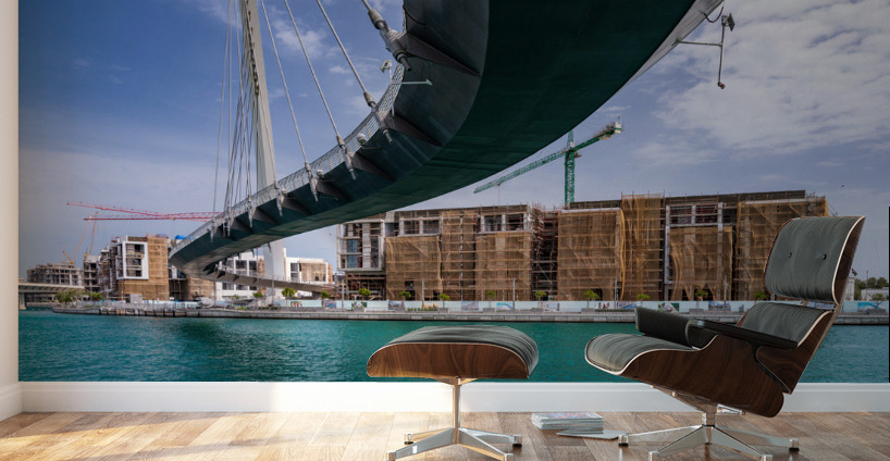 New apartment blocks alongside Dubai Canal with Tolerance suspension bridge