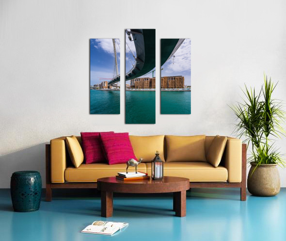 Get this artwork "Modern apartments alongside Dubai Canal under Tolerance bridge" in a framed print.