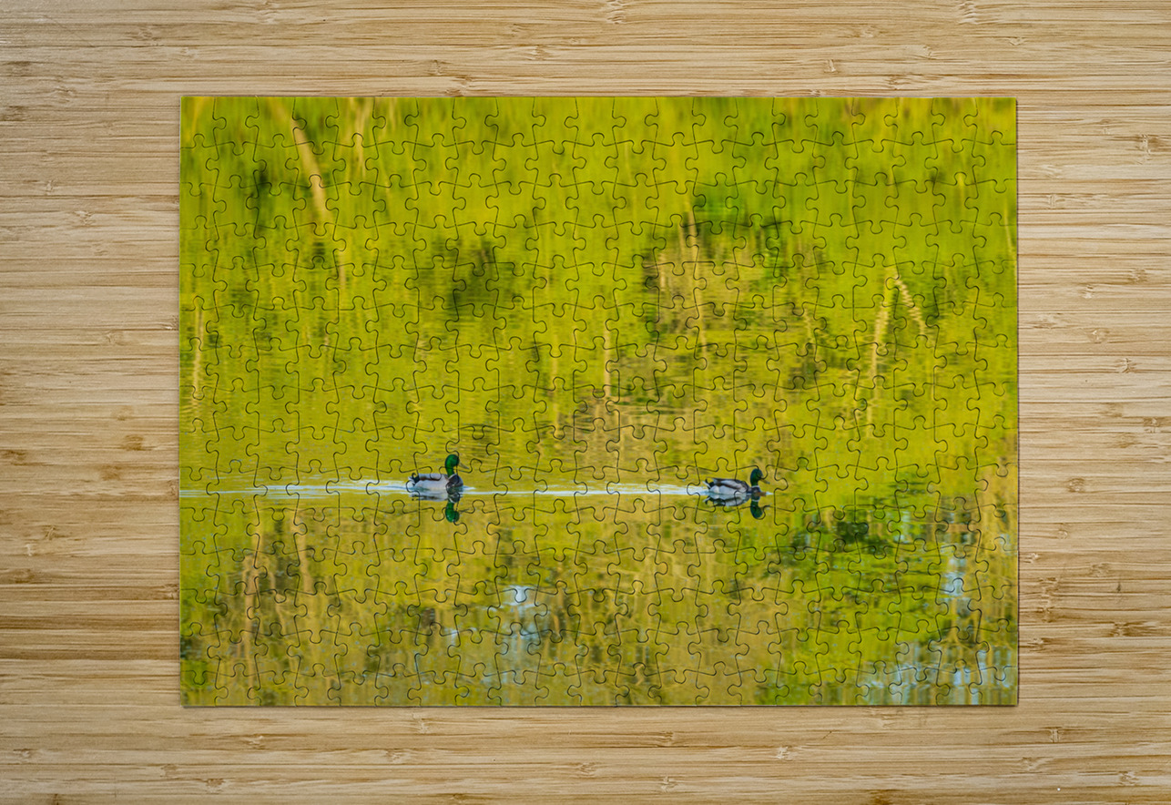Two ducks floating through reflection of sunlit trees Steve Heap Puzzle printing