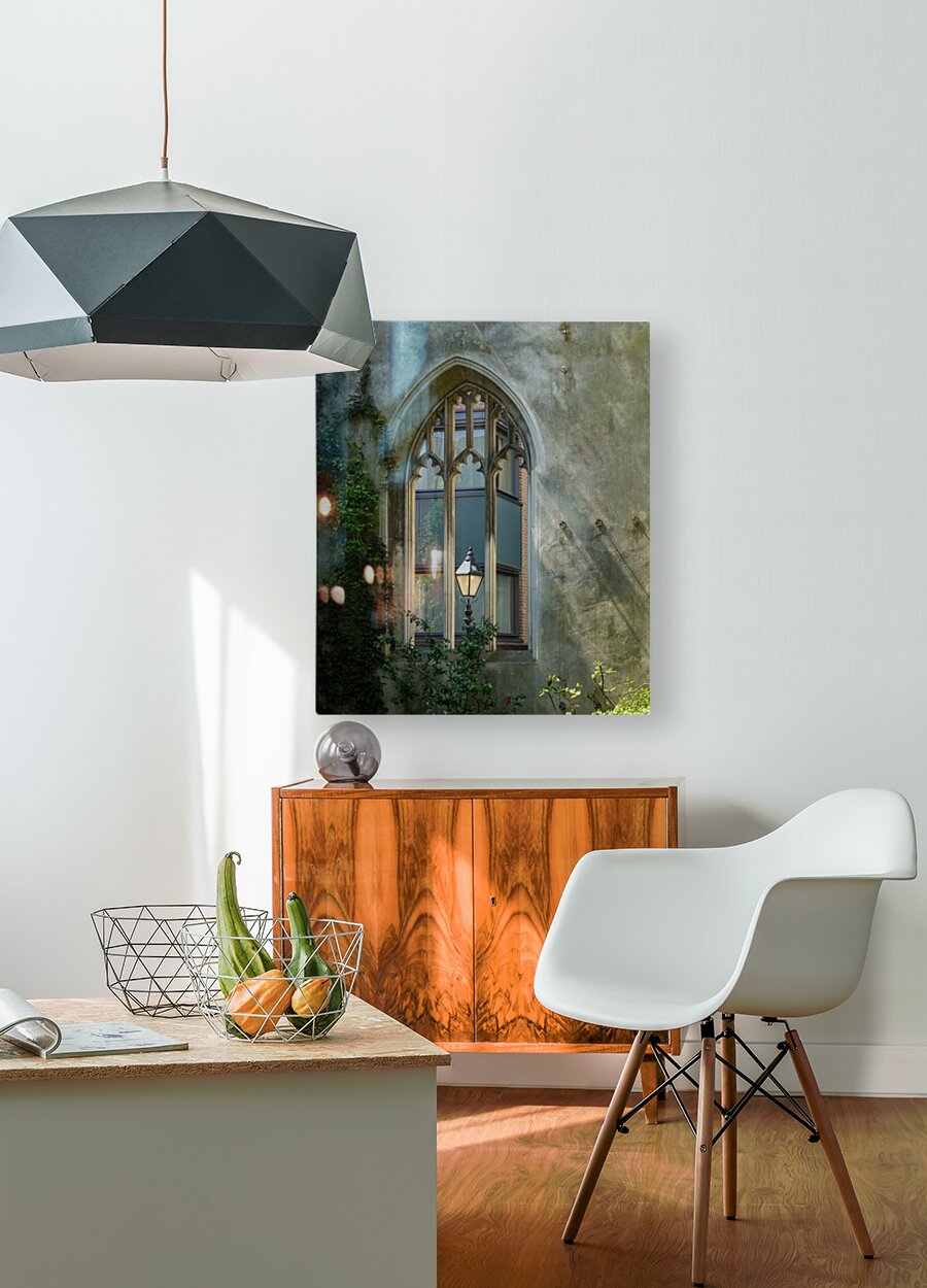 London street light seen through old windows of St Dunstan Wood print