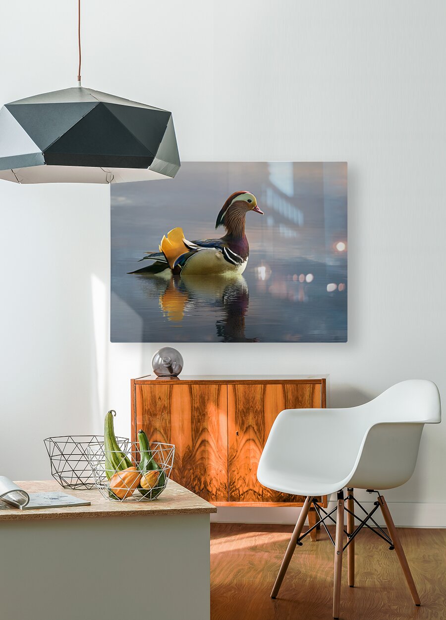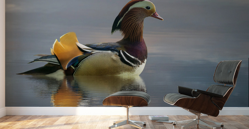 Mandarin duck floats on Ellesmere Mere to a clear reflection of  Steve Heap Puzzle printing