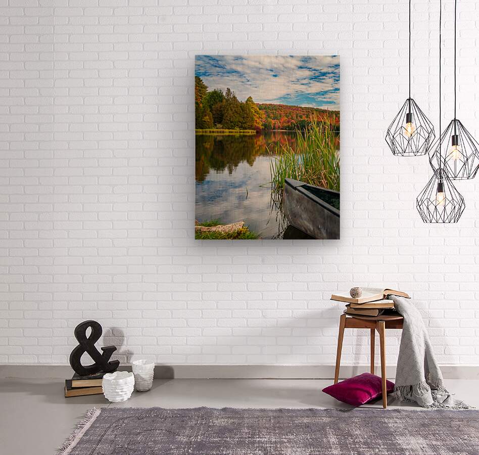 Prow of Canoe ready to launch in Silver Lake Vermont Wood print