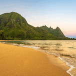 EARLY MORNING SUNRISE OVER TUNNELS BEACH ON KAUAI IN HAWAII