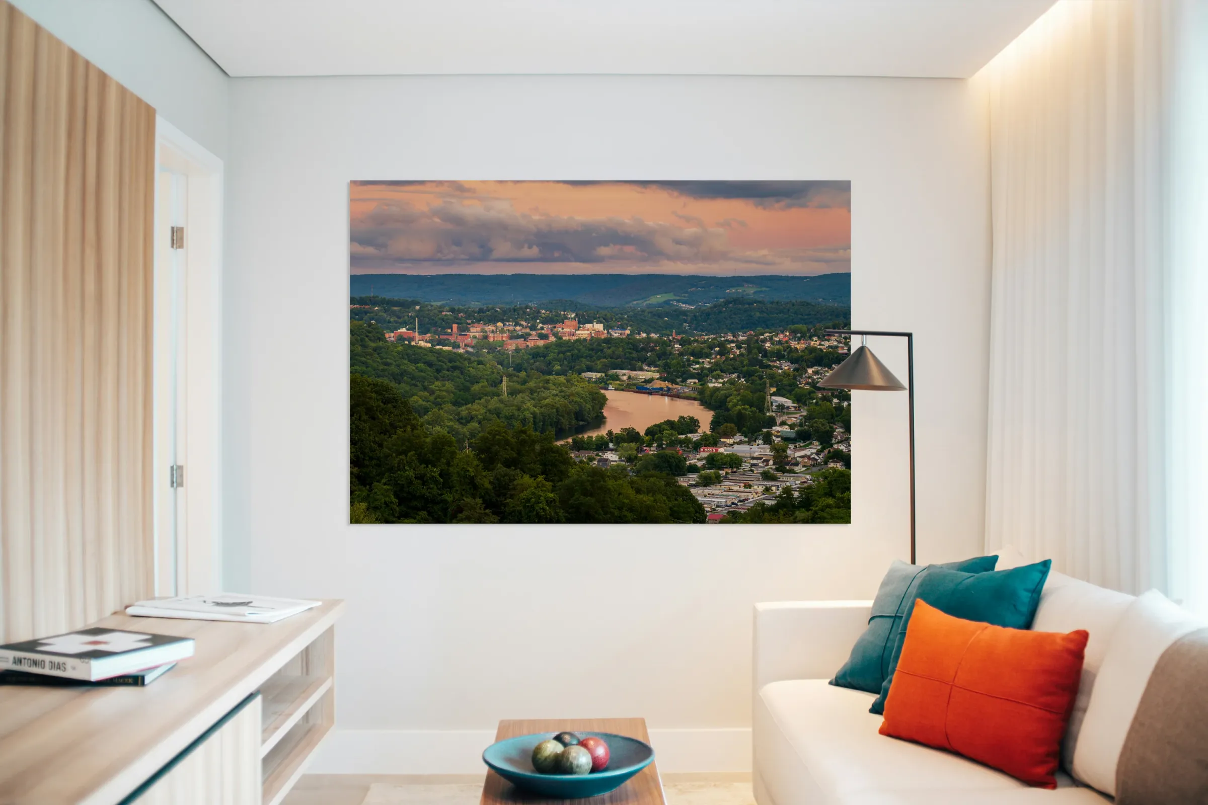 Sunset lights the sky above Morgantown in West Virginia Canvas print