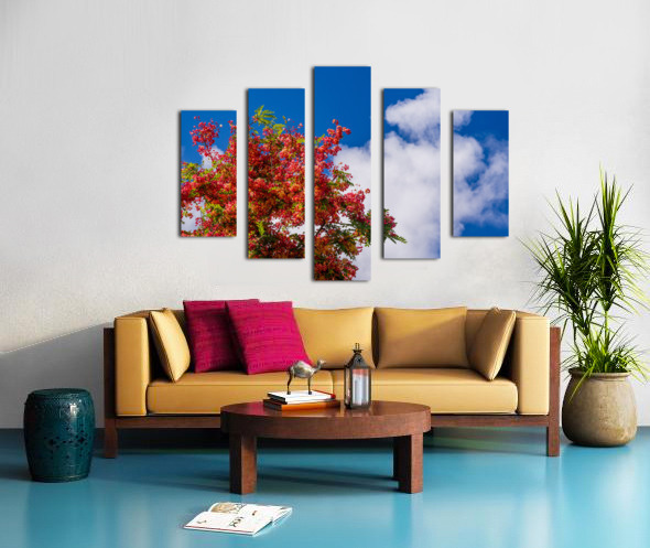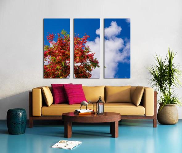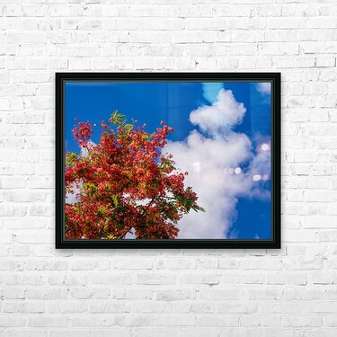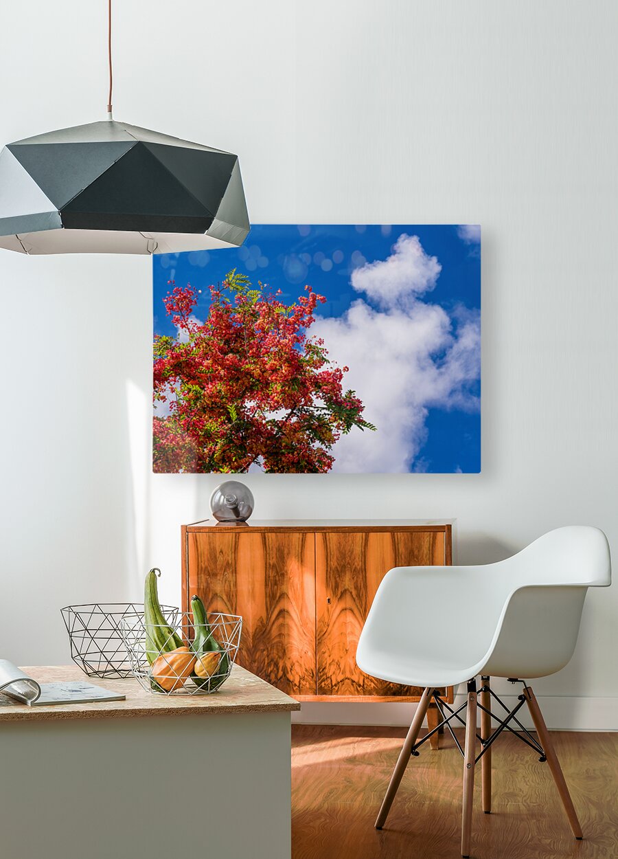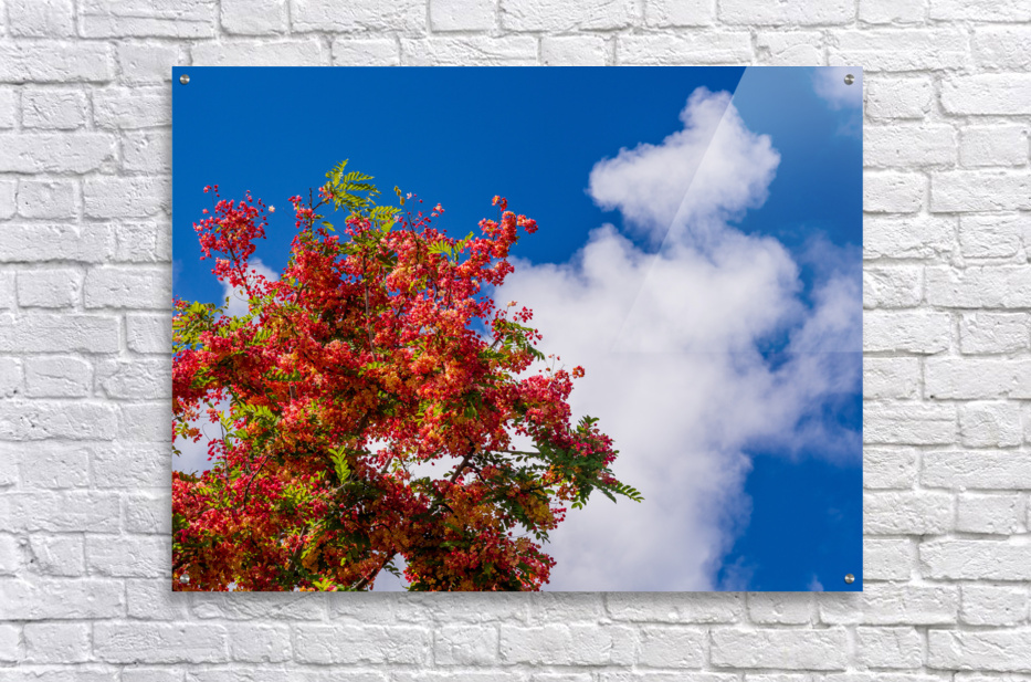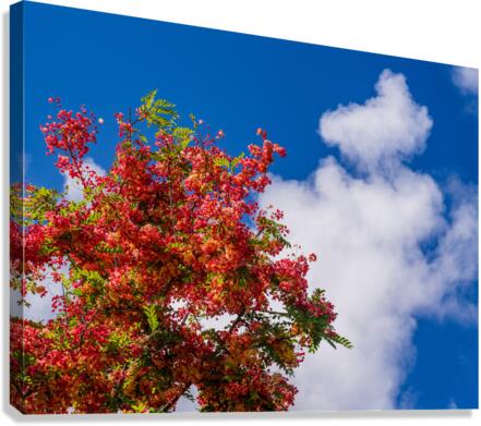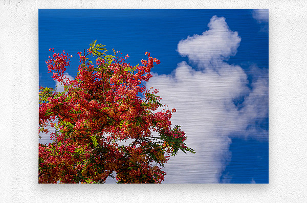 ABOUT THIS ARTWORK: GORGEOUS RAINBOW SHOWER TREE BLOSSOMS AGAINST BLUE SKY