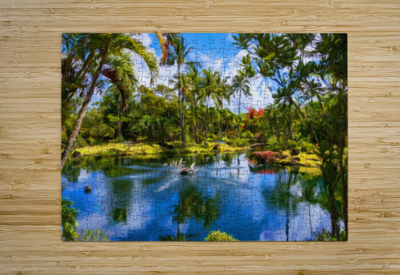 Oil painting of lagoon in the Na Aina Kai sculpture garden Steve Heap Puzzle