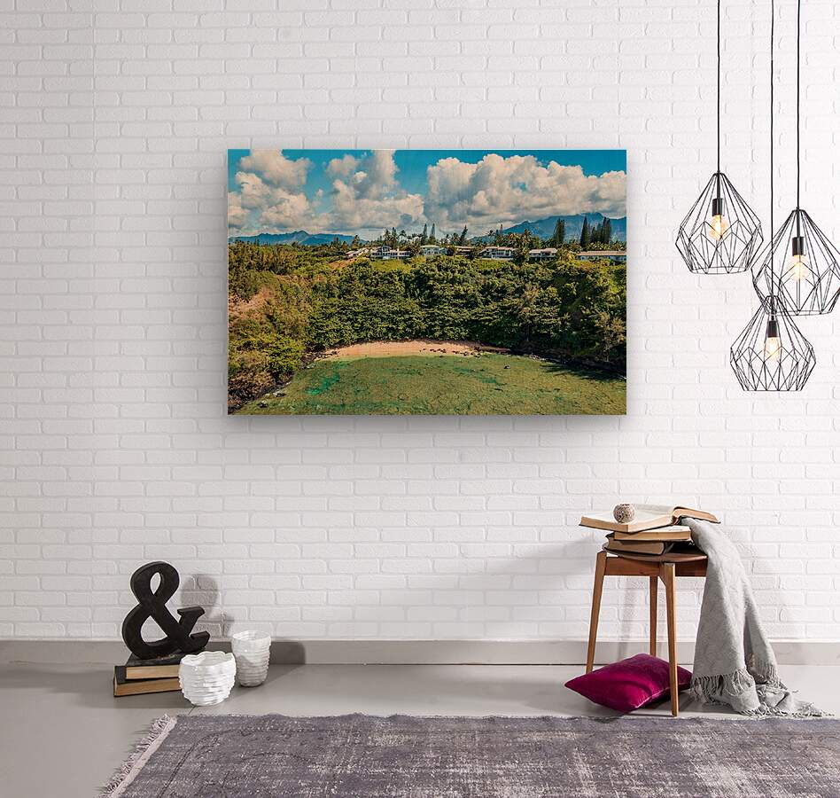 Get this artwork "Aerial overview of Sealodge beach in Princeville on Kauai" in a framed print.