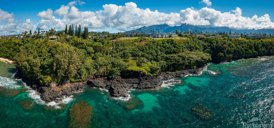 Get this artwork "Rugged coastline of Sealodge beach in Princeville on Kauai" in a framed print.