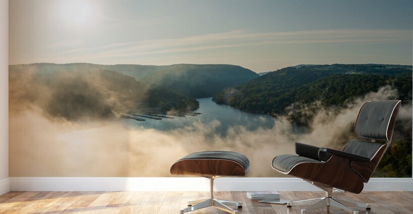 ABOUT THIS ARTWORK: MIST RISES FROM CHEAT LAKE IN THE EARLY MORNING AS THE SUN RISES