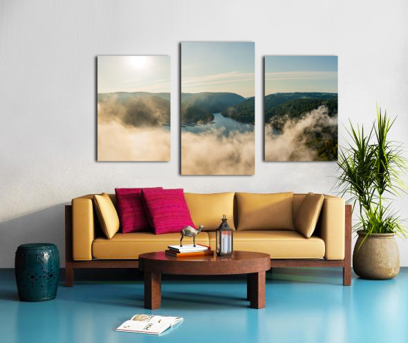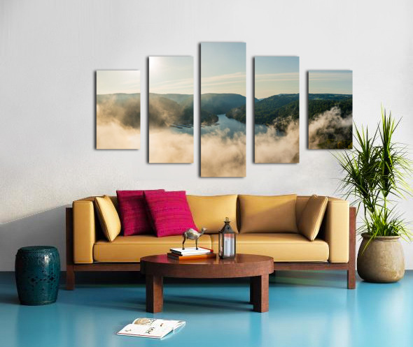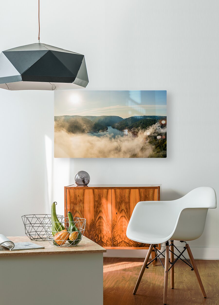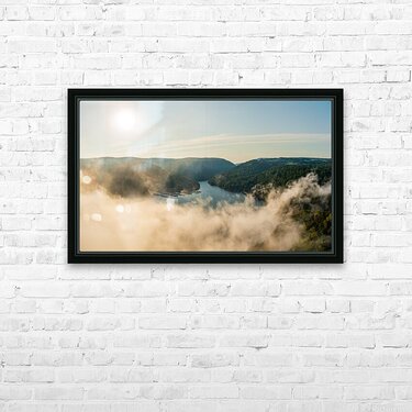 Mist rises from Cheat Lake in the early morning as the sun rises Picture Frame Printing