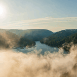 Mist rises from Cheat Lake in the early morning as the sun rises Steve Heap Puzzle