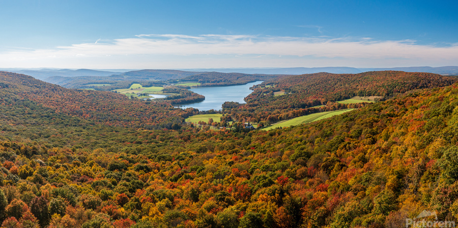 View of the fall colors of Pennsylvania to High Point Lake Wood print