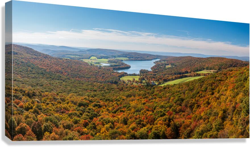 Get this artwork "View of the fall colors of Pennsylvania to High Point Lake" in a framed print.