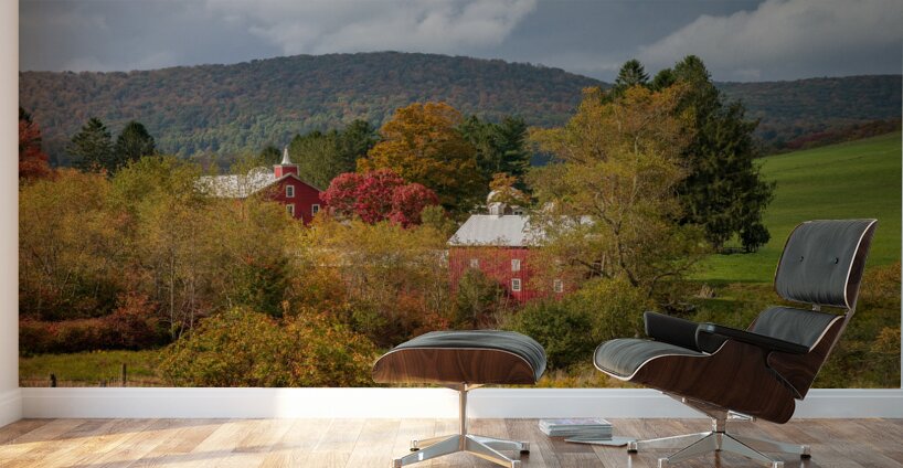 ABOUT THIS ARTWORK: HISTORIC RED BARN AND FARM NESTLED IN FALL COLORS IN WEST VIRGIN