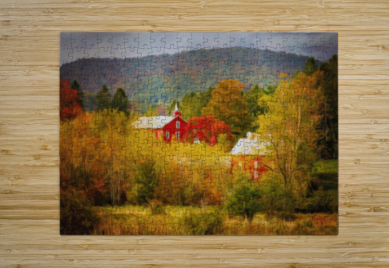 Painting of historic red barn nestled in fall colors in West Vir Steve Heap Puzzle