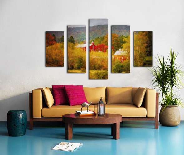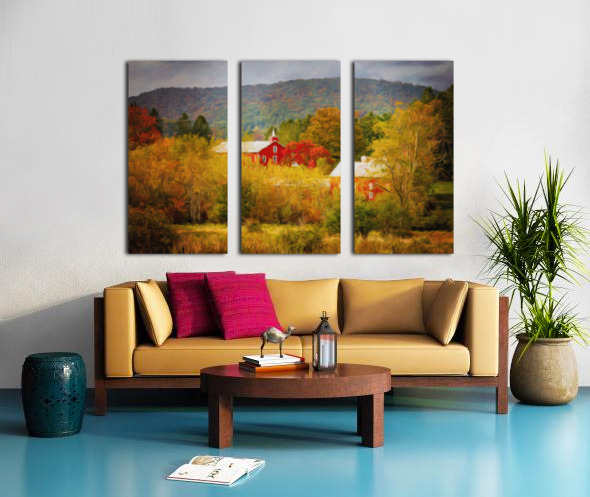 Painting of historic red barn nestled in fall colors in West Vir Picture Frame Printing