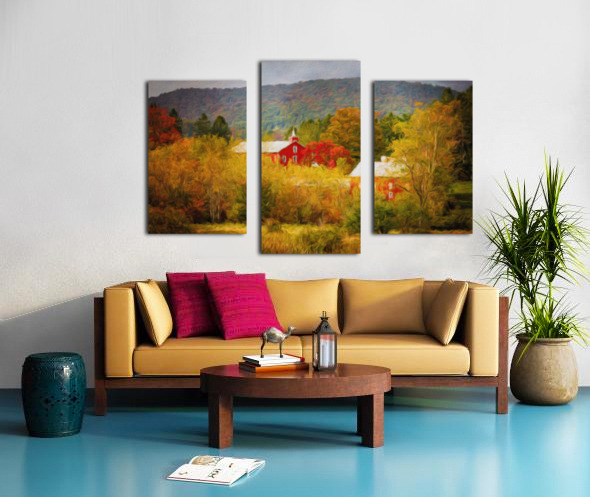 Get this artwork "Painting of historic red barn nestled in fall colors in West Vir" in a framed print.