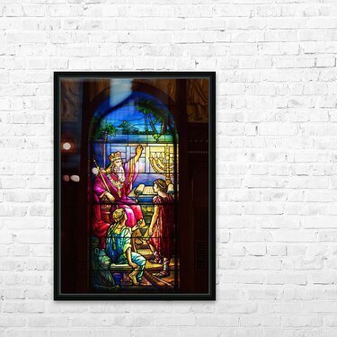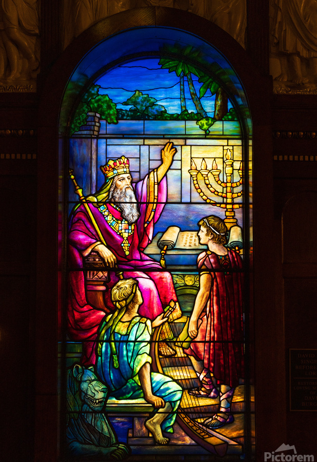 David set singers before the Lord. Tiffany stained glass window. Picture Frame Printing