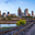 St Paul MN - 14 October 2023: Early morning cityscape of Twin Cities in Minnesota and Mississippi river with railroad bridge