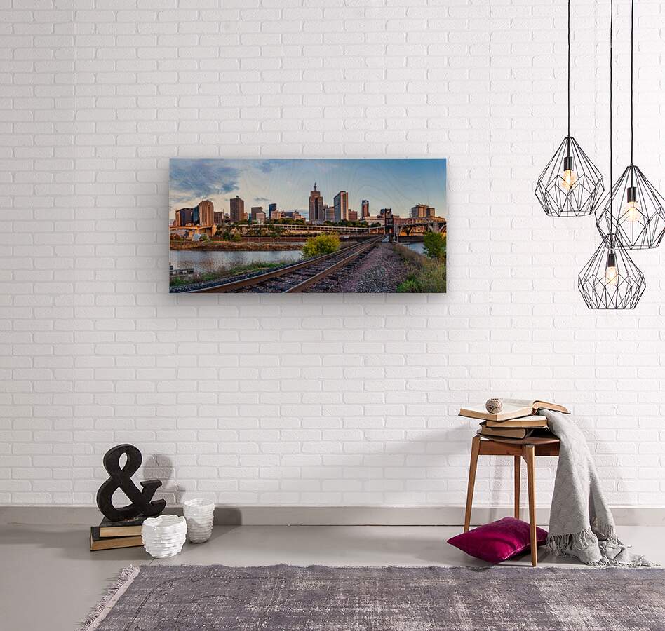 Sunrise over the downtown district of St Paul and Mississippi  Wood print