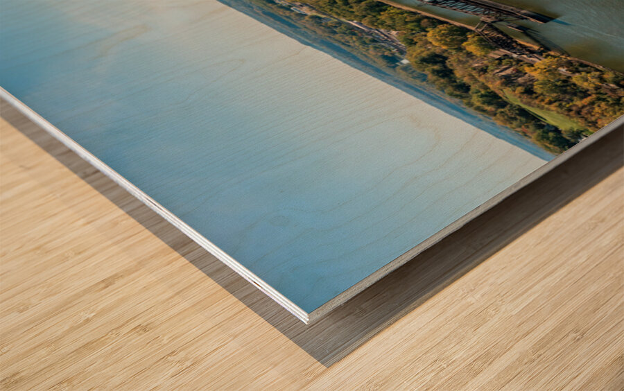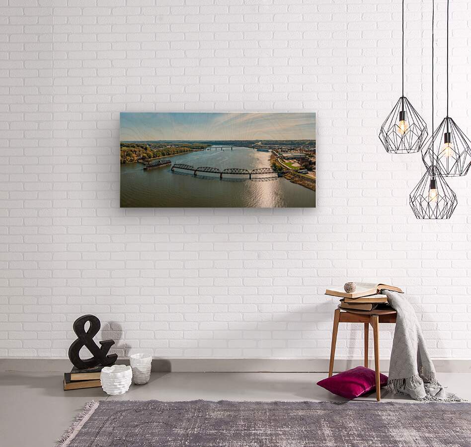 Historic rail bridge between Dubuque Iowa and East Dubuque  Wood print