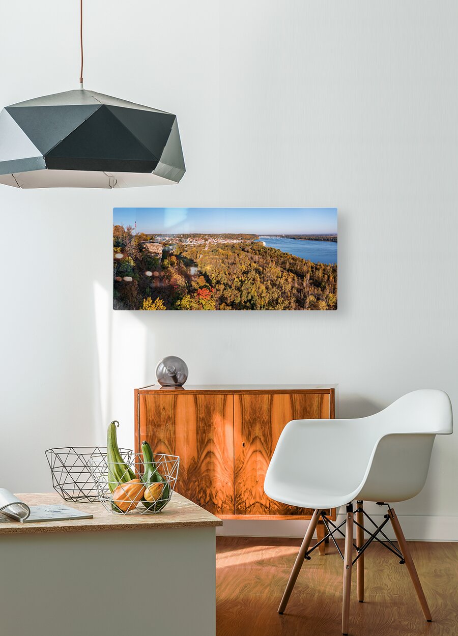 Lovers Leap overlook in Hannibal Missouri with townscape Wood print