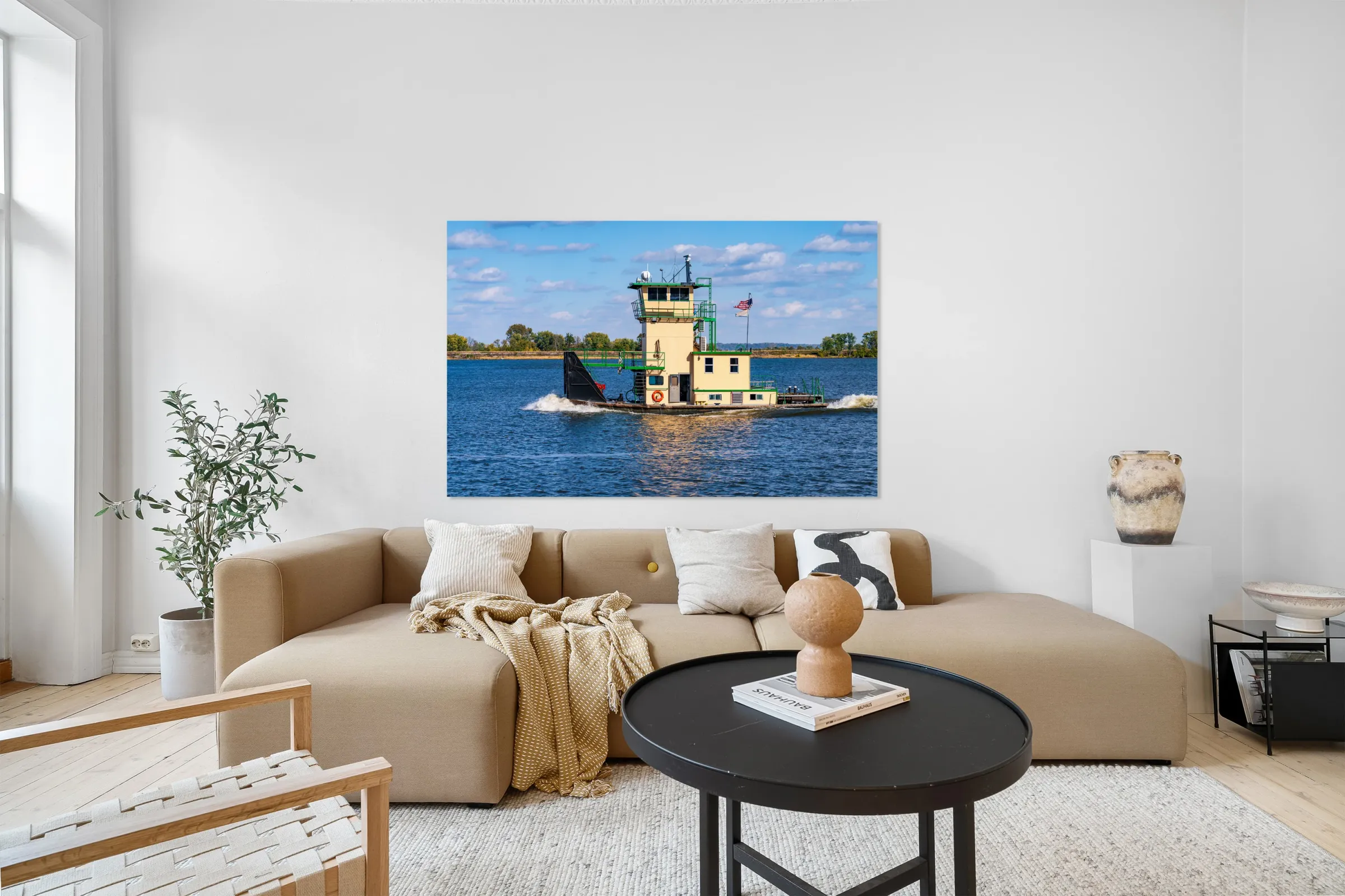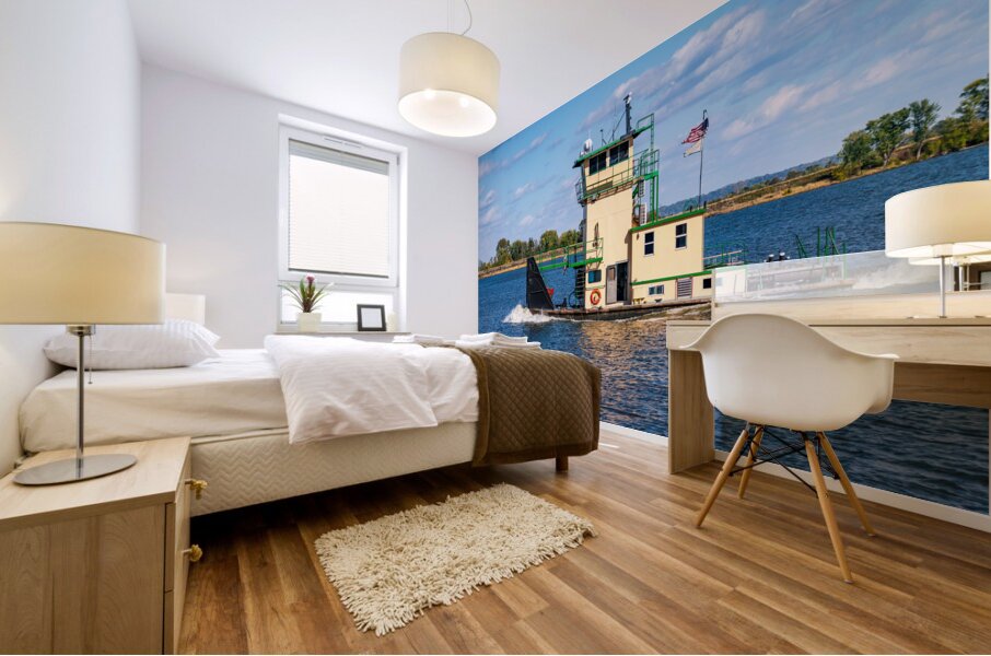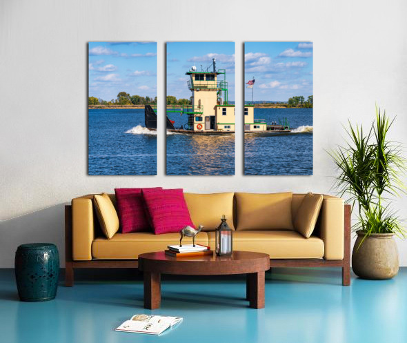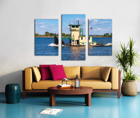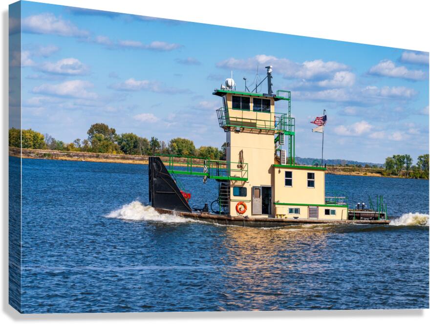 Get this artwork "Tug boat or pusher boat leaving Lock and Dam 22 on Mississippi r" in a framed print.
