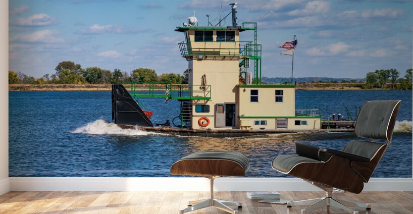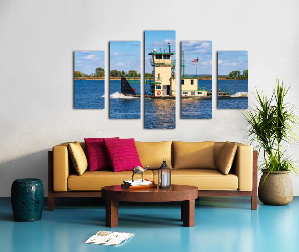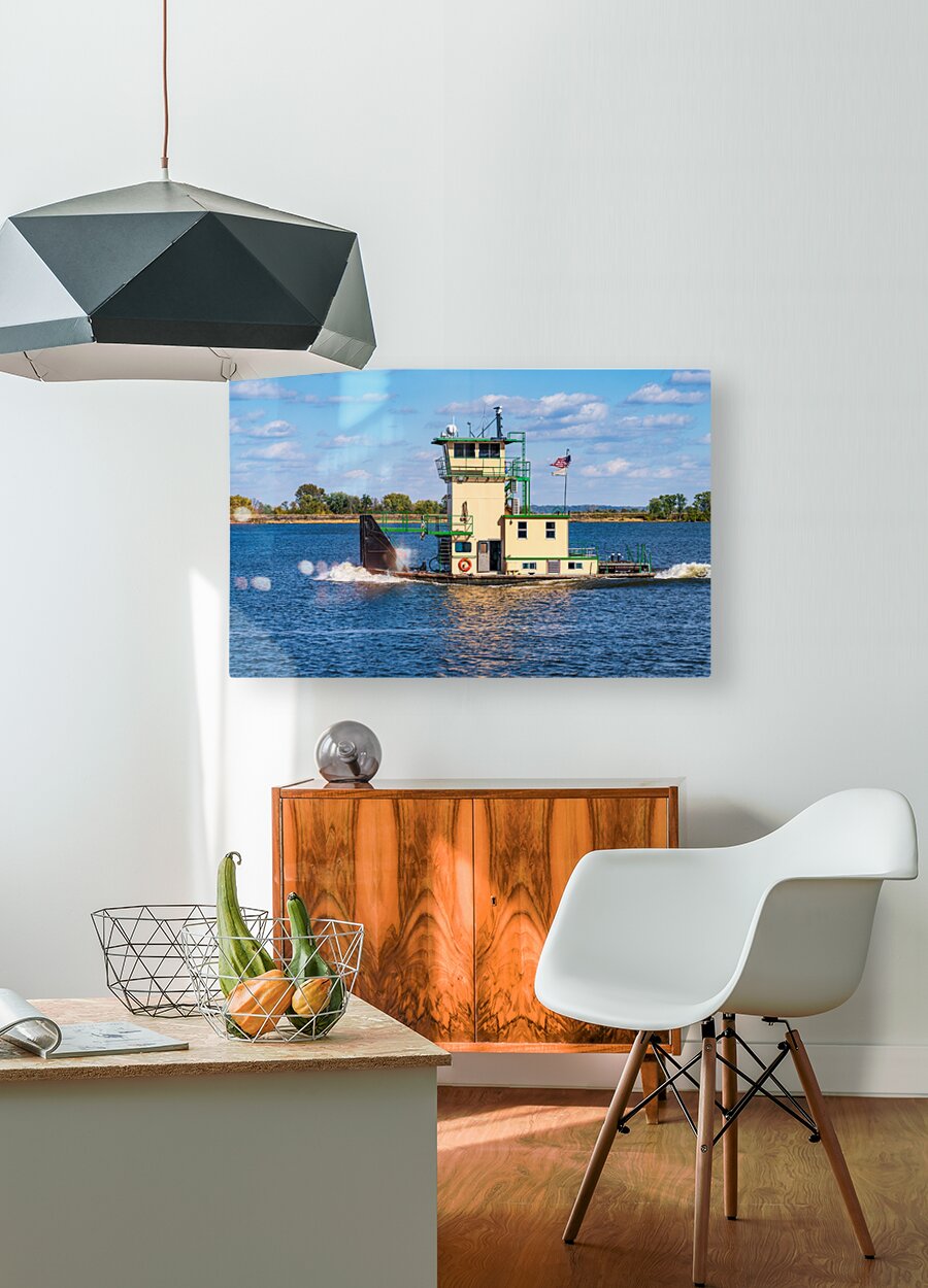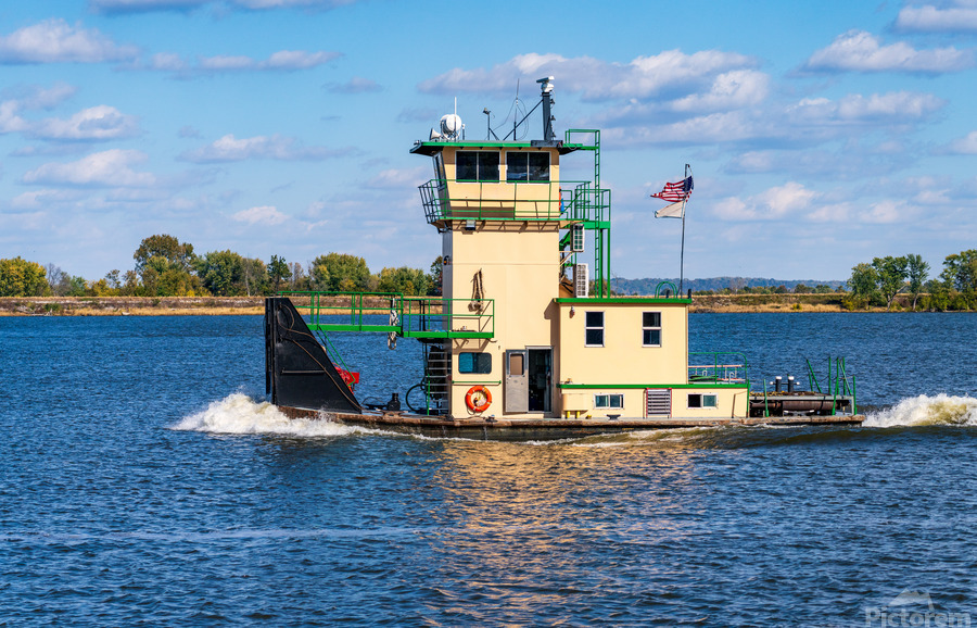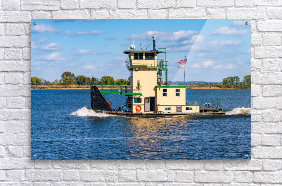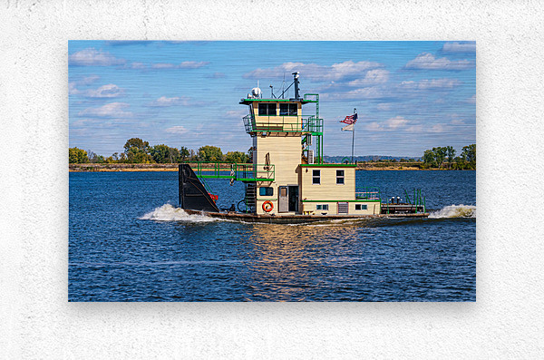 Tug boat or pusher boat leaving Lock and Dam 22 on Mississippi r Steve Heap Puzzle printing