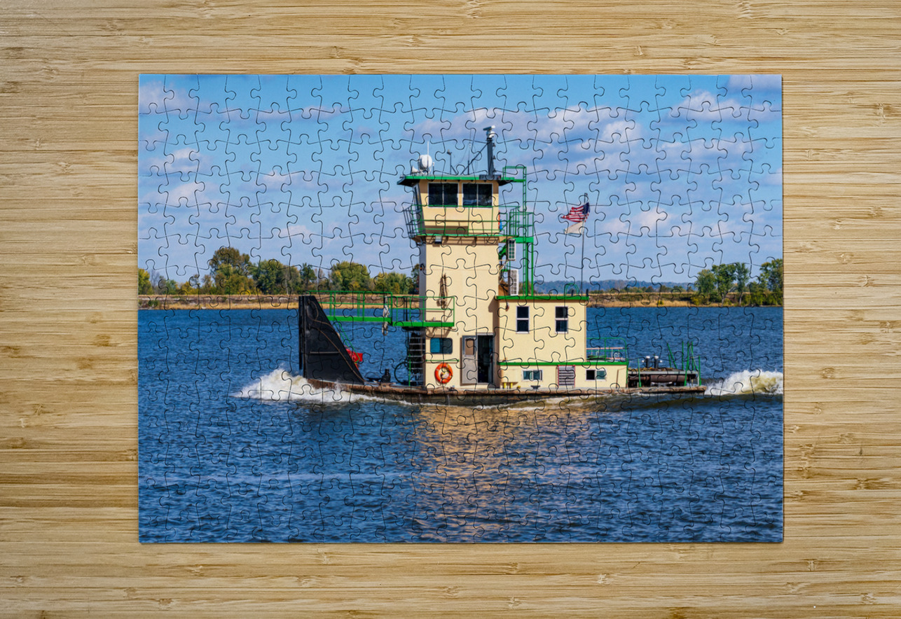 Tug boat or pusher boat leaving Lock and Dam 22 on Mississippi r Steve Heap Puzzle