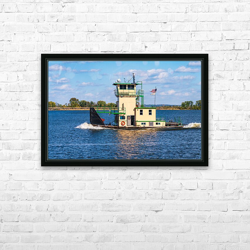 Tug boat or pusher boat leaving Lock and Dam 22 on Mississippi r Picture Frame Printing