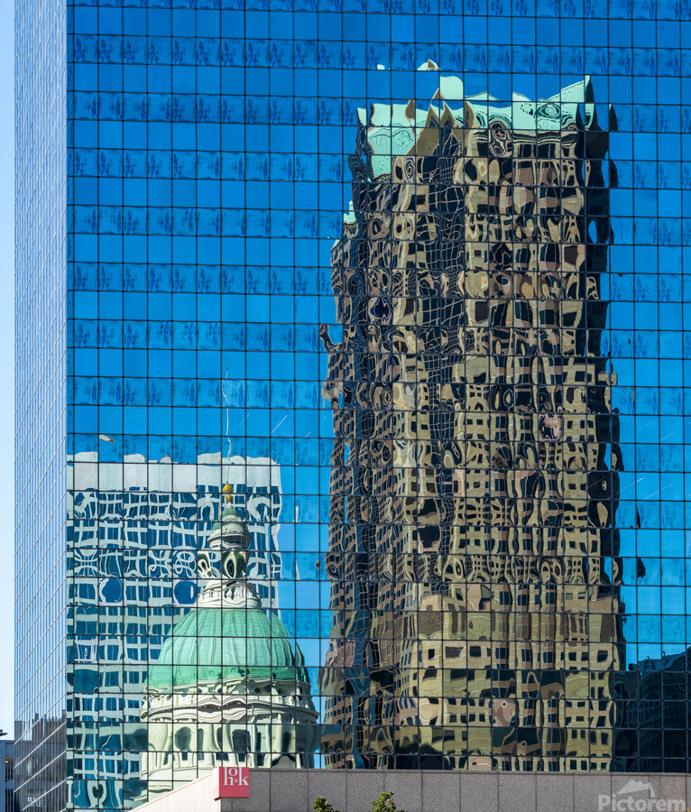 Complex reflections of a modern skyscraper in St Louis office bu Picture Frame Printing