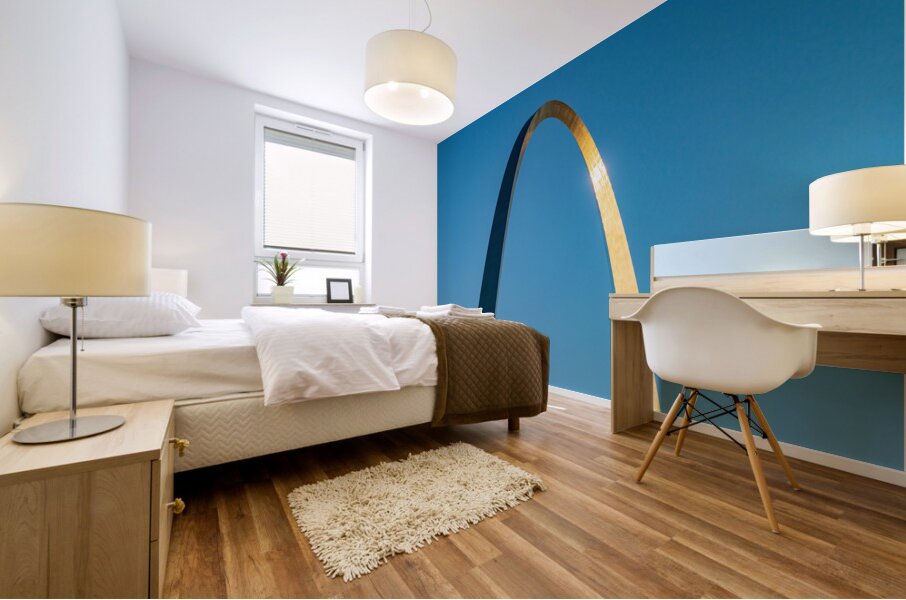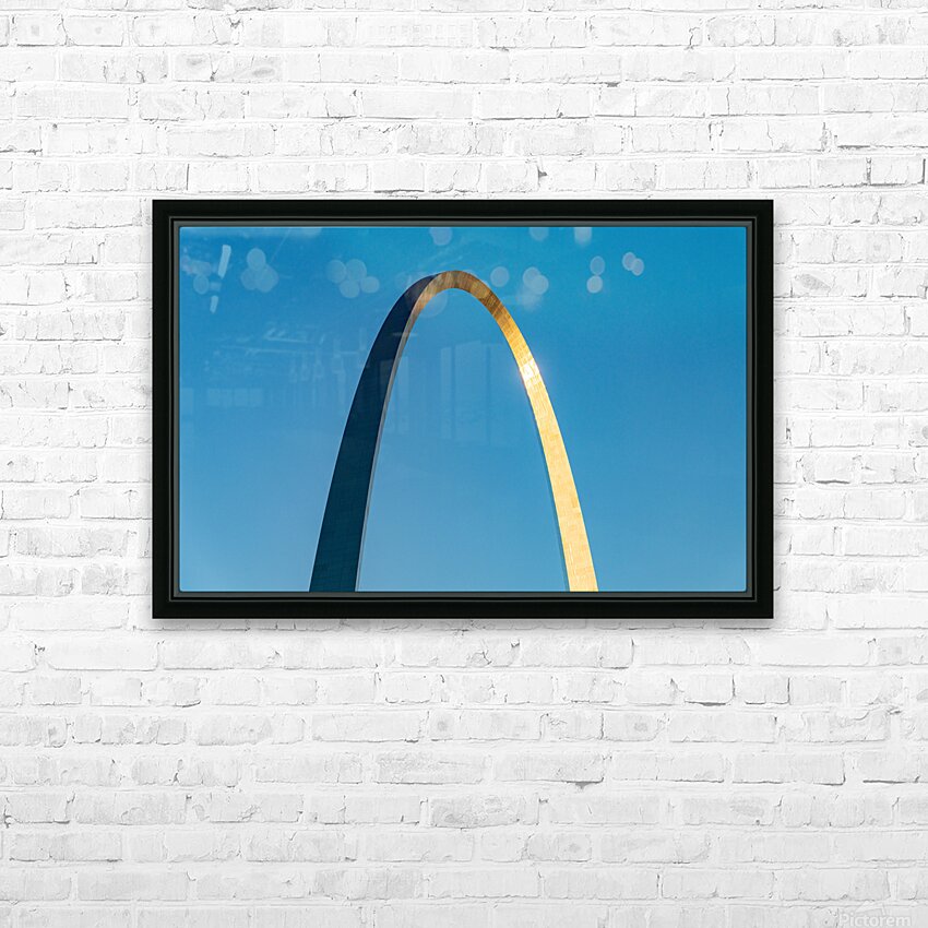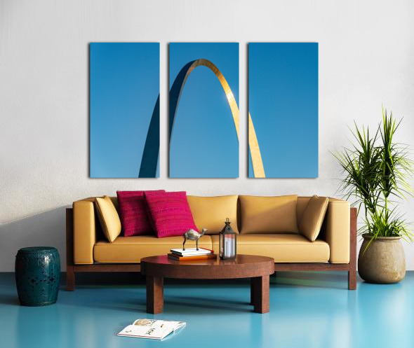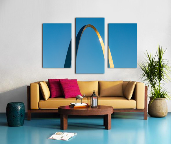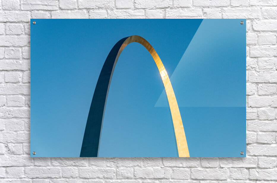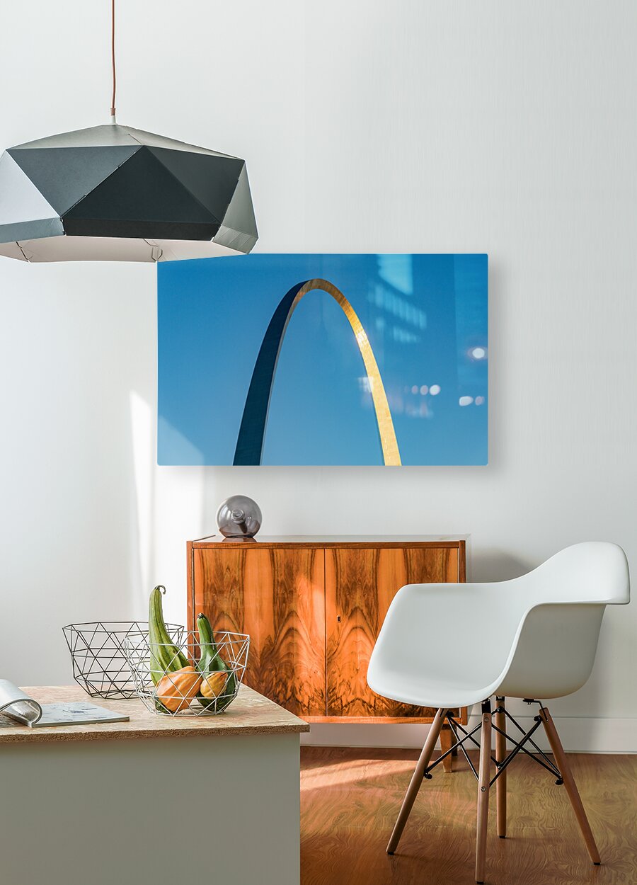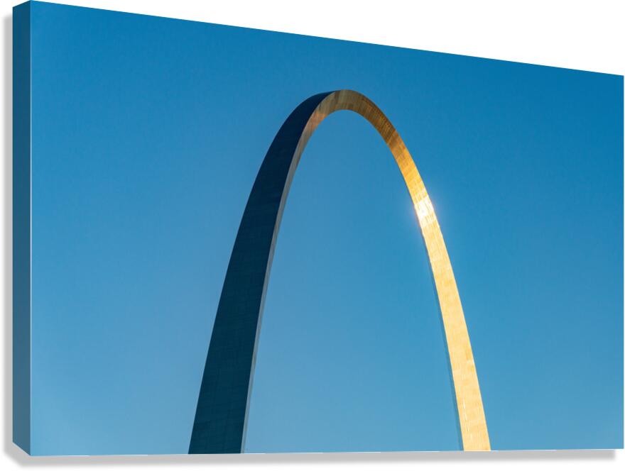 Get this artwork "Unusual view of Gateway Arch at sunrise against blue sky" in a framed print.