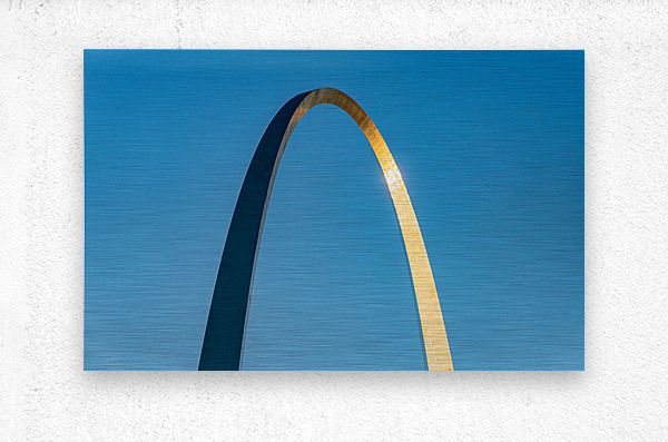 ABOUT THIS ARTWORK: UNUSUAL VIEW OF GATEWAY ARCH AT SUNRISE AGAINST BLUE SKY