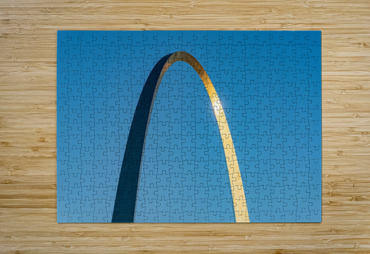Unusual view of Gateway Arch at sunrise against blue sky Steve Heap Puzzle printing