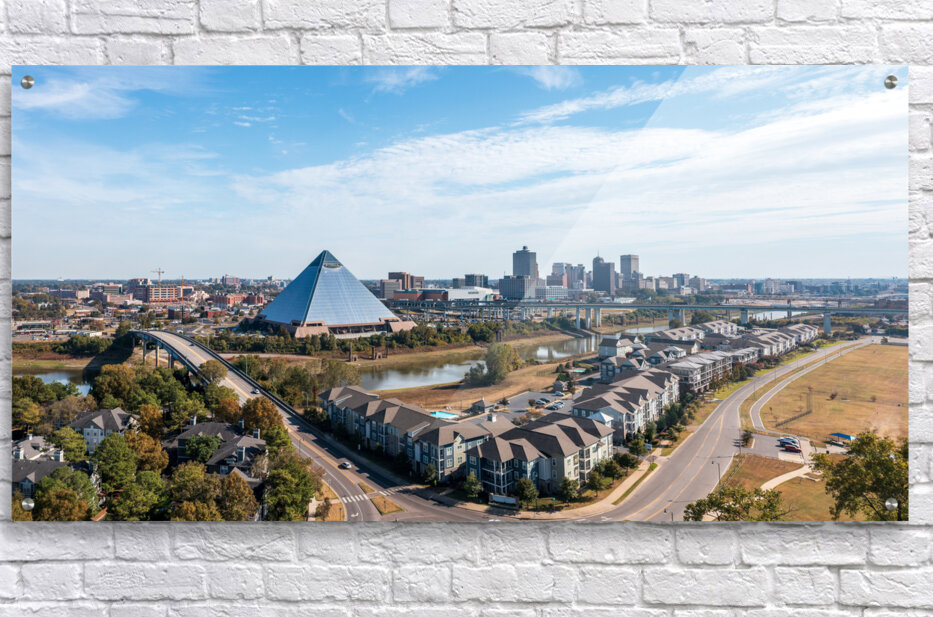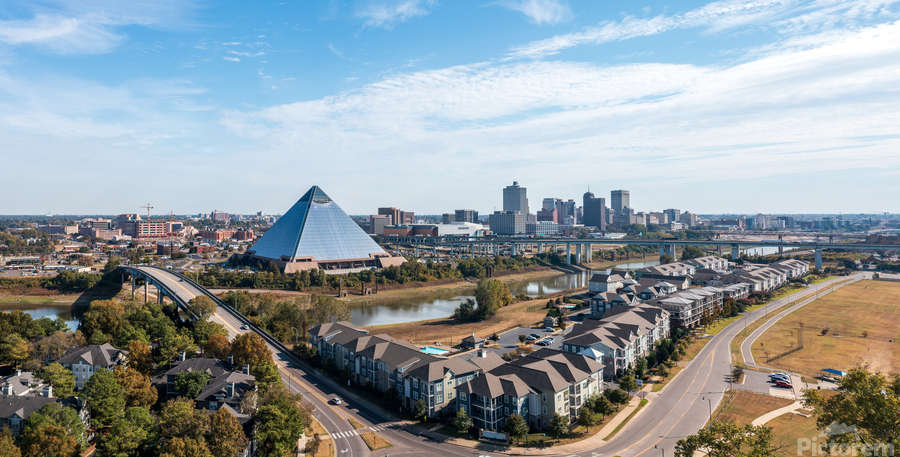 City skyline of Memphis in Tennessee with low water Picture Frame Printing
