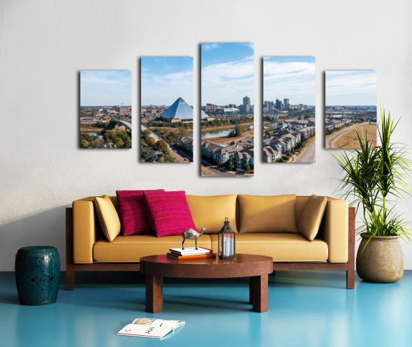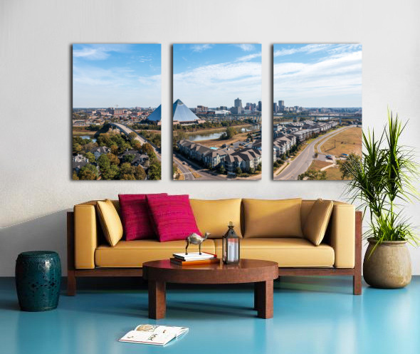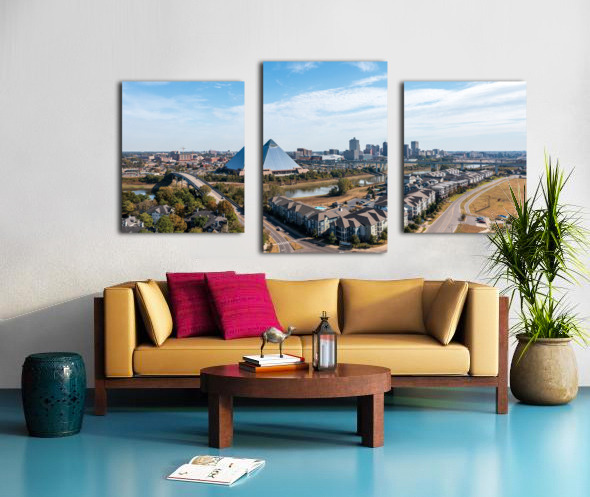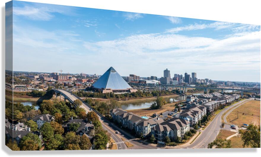 Get this artwork "City skyline of Memphis in Tennessee with low water" in a framed print.