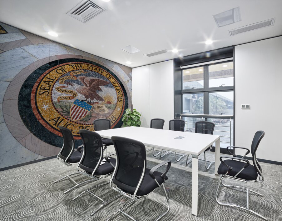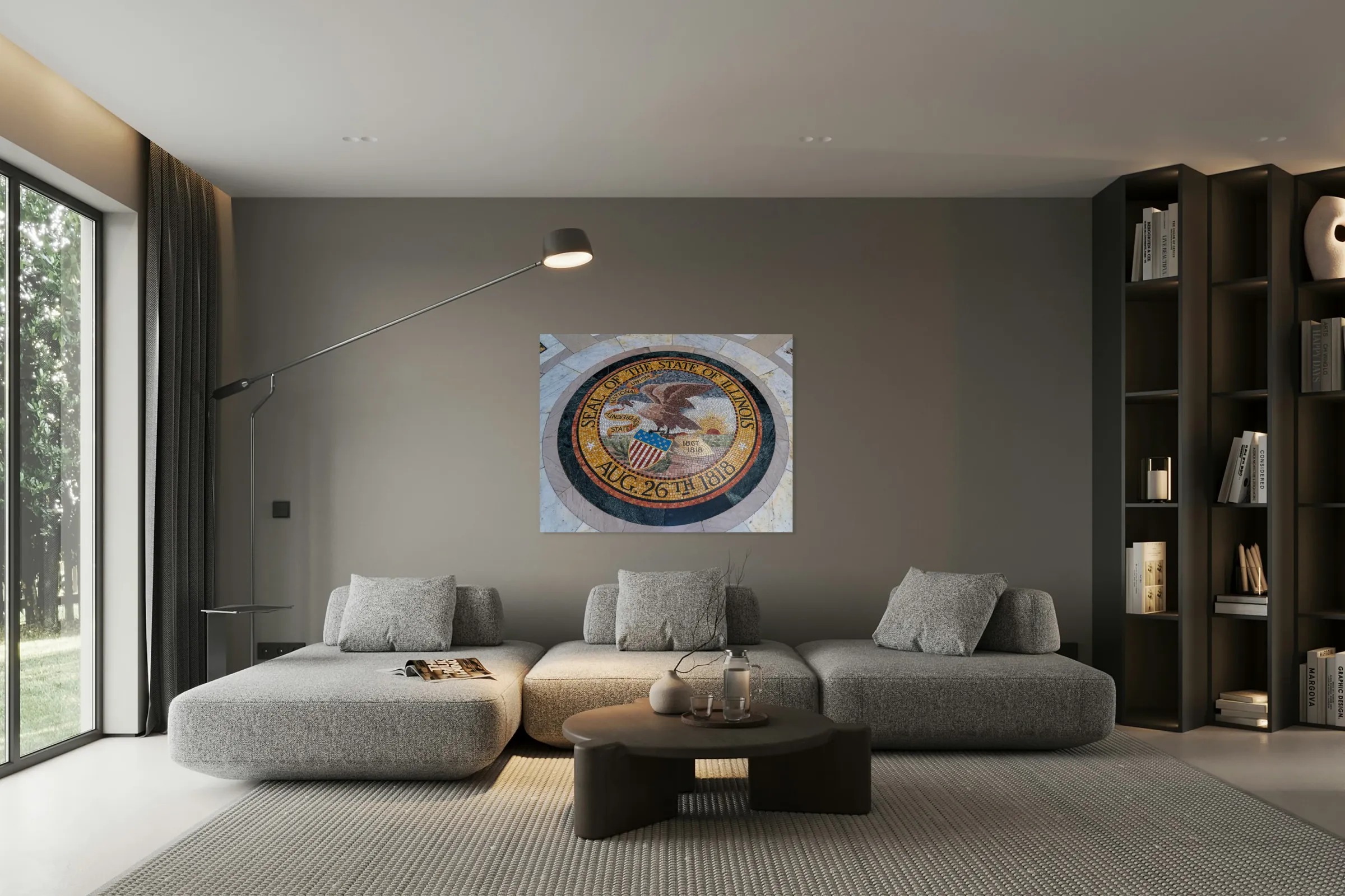 Great Seal of Illinois in the floor of marble memorial to fallen soldiers in the civil war battle of Vicksburg in Mississippi