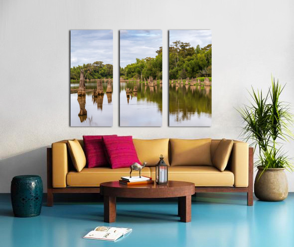 Get this artwork "Stumps of bald cypress trees rise out of water in Atchafalaya ba" in a framed print.