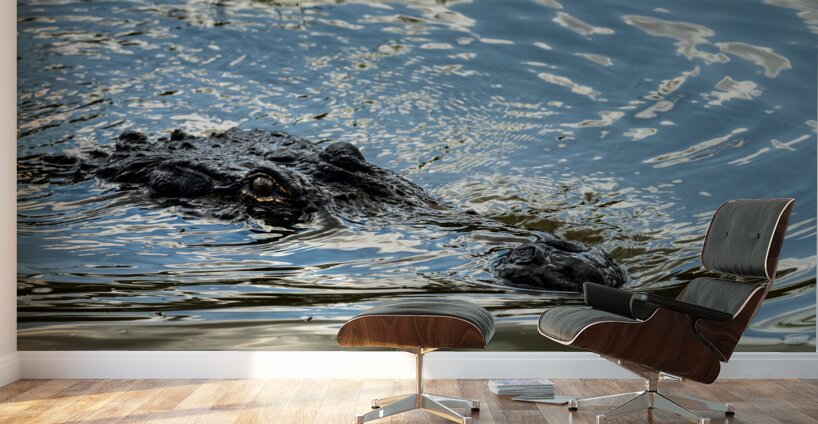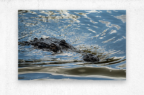 ABOUT THIS ARTWORK: AMERICAN ALLIGATOR HEAD IN CALM WATERS OF ATCHAFALAYA
