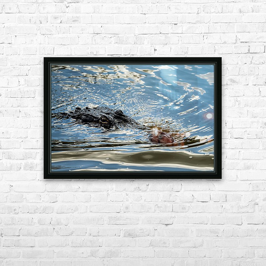 American alligator head in calm waters of Atchafalaya Picture Frame Printing