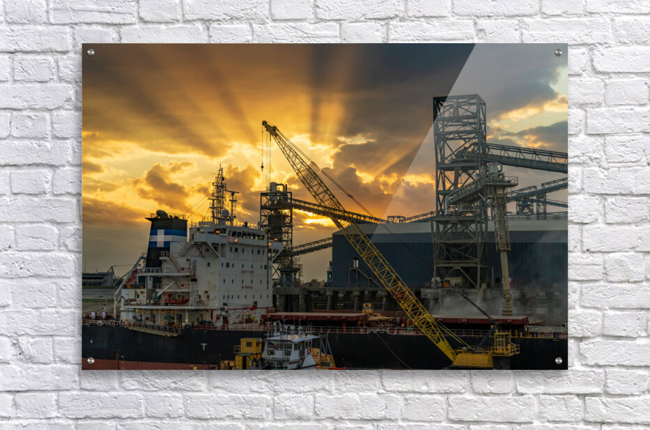 ABOUT THIS ARTWORK: SUNSET OVER PORT ALLEN ON MISSISSIPPI RIVER IN BATON ROUGE LOUI