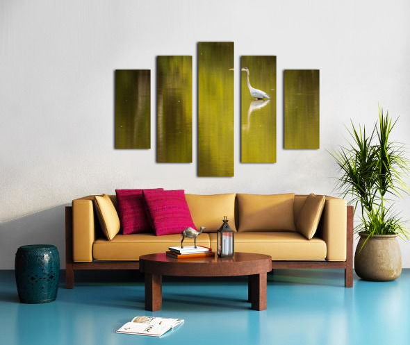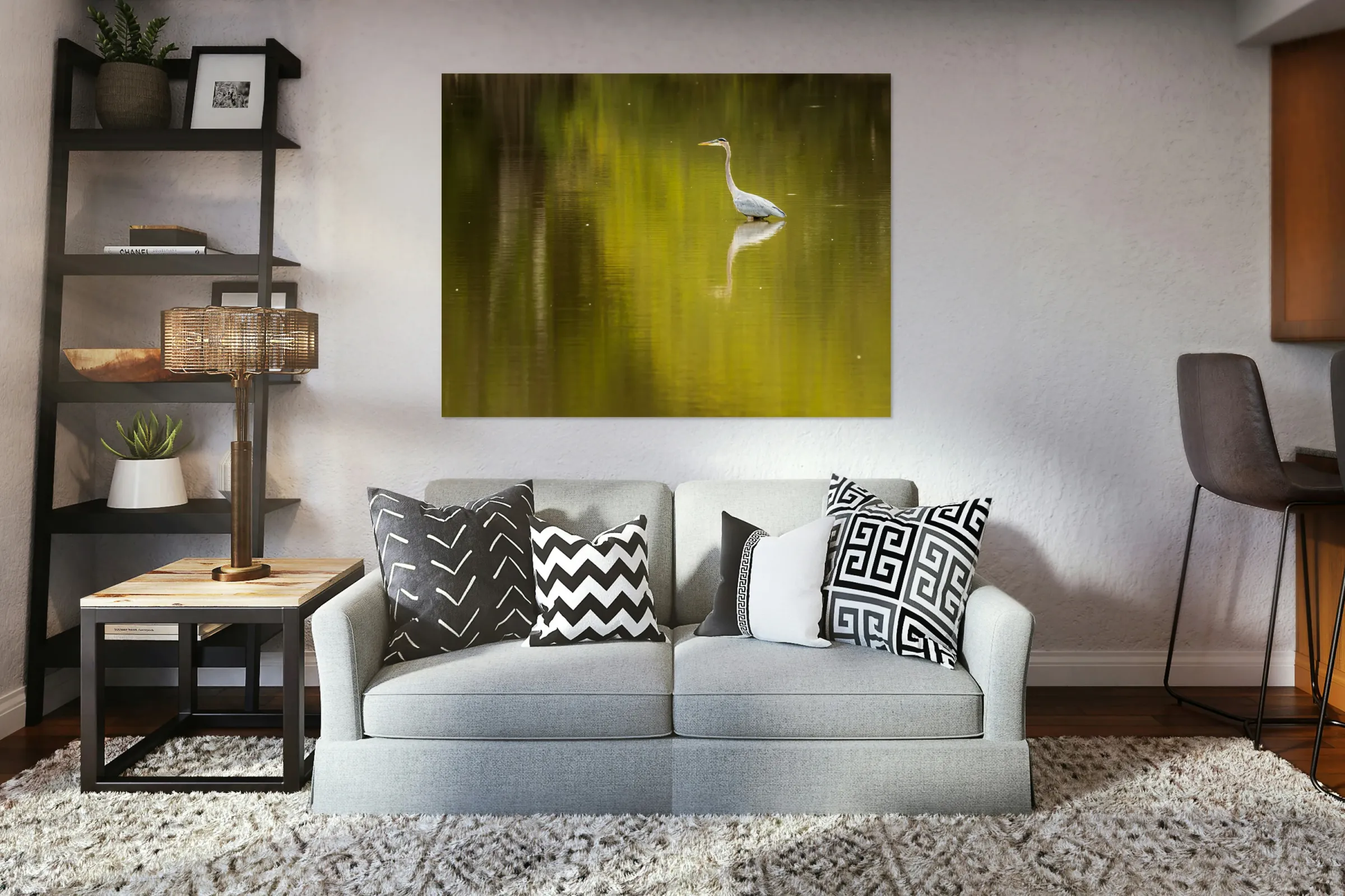 Great blue heron standing in calm water in Atchafalaya basin Canvas print