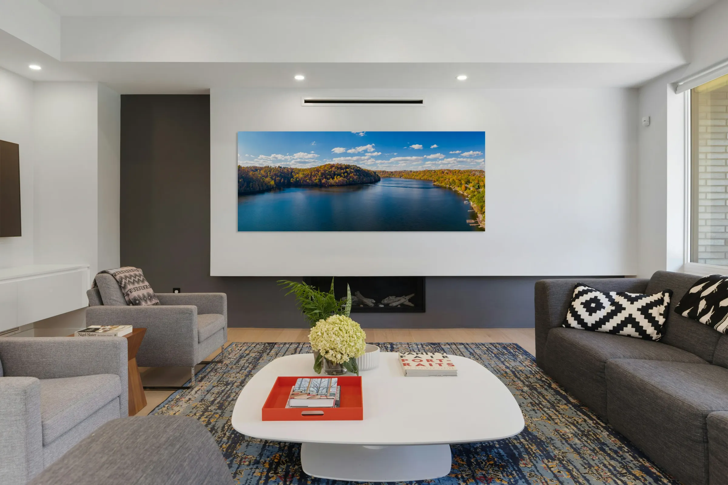 Aerial panorama of fall colors on Cheat Lake Morgantown WV with Picture Frame Printing