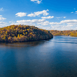 AERIAL PANORAMA OF FALL COLORS ON CHEAT LAKE MORGANTOWN WV WITH