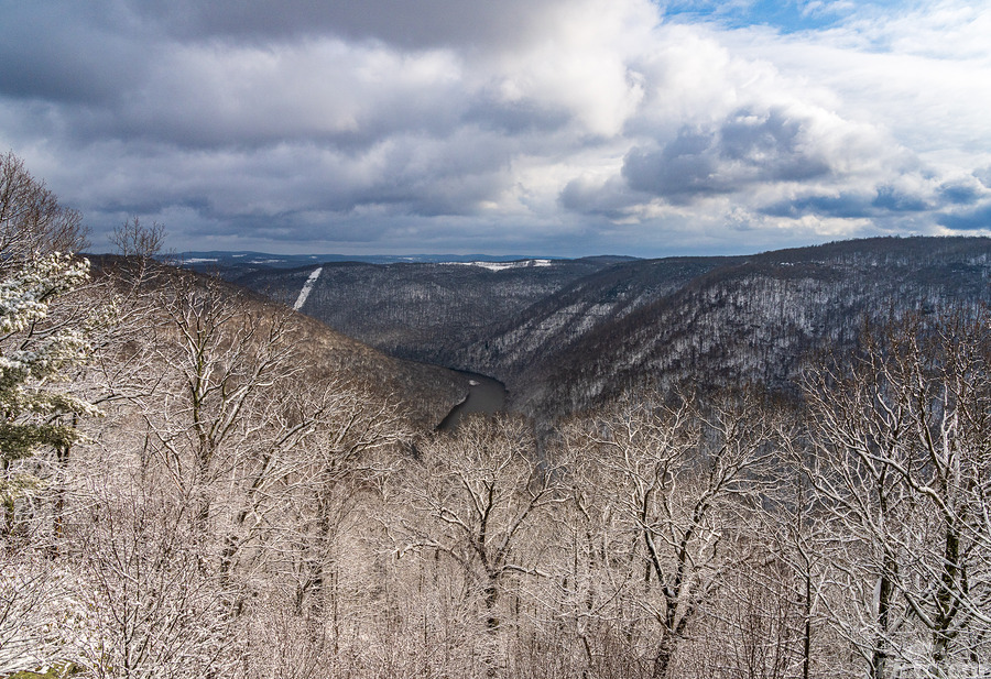 SNOWY CHEAT RIVER CANYON AT COOPERS ROCK ON WINTER AFTERNOON